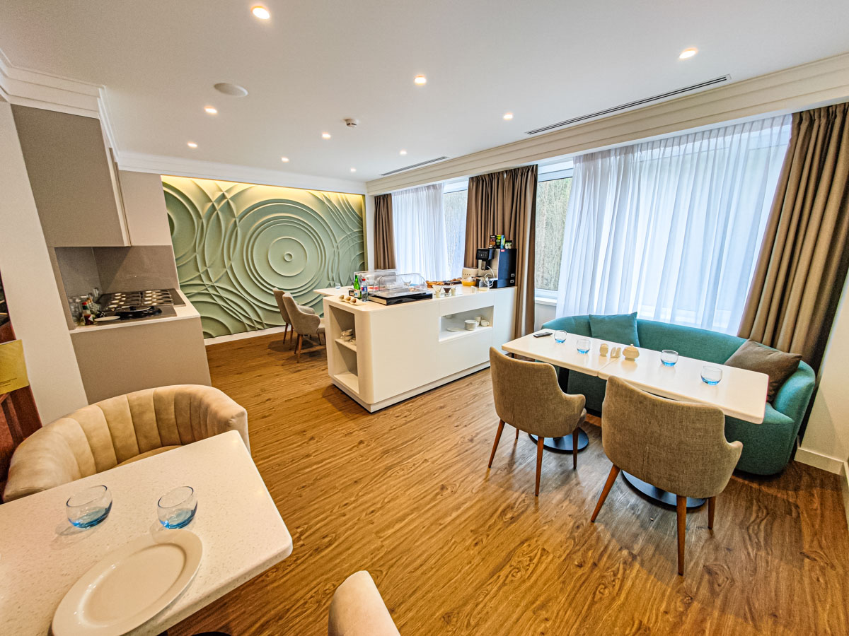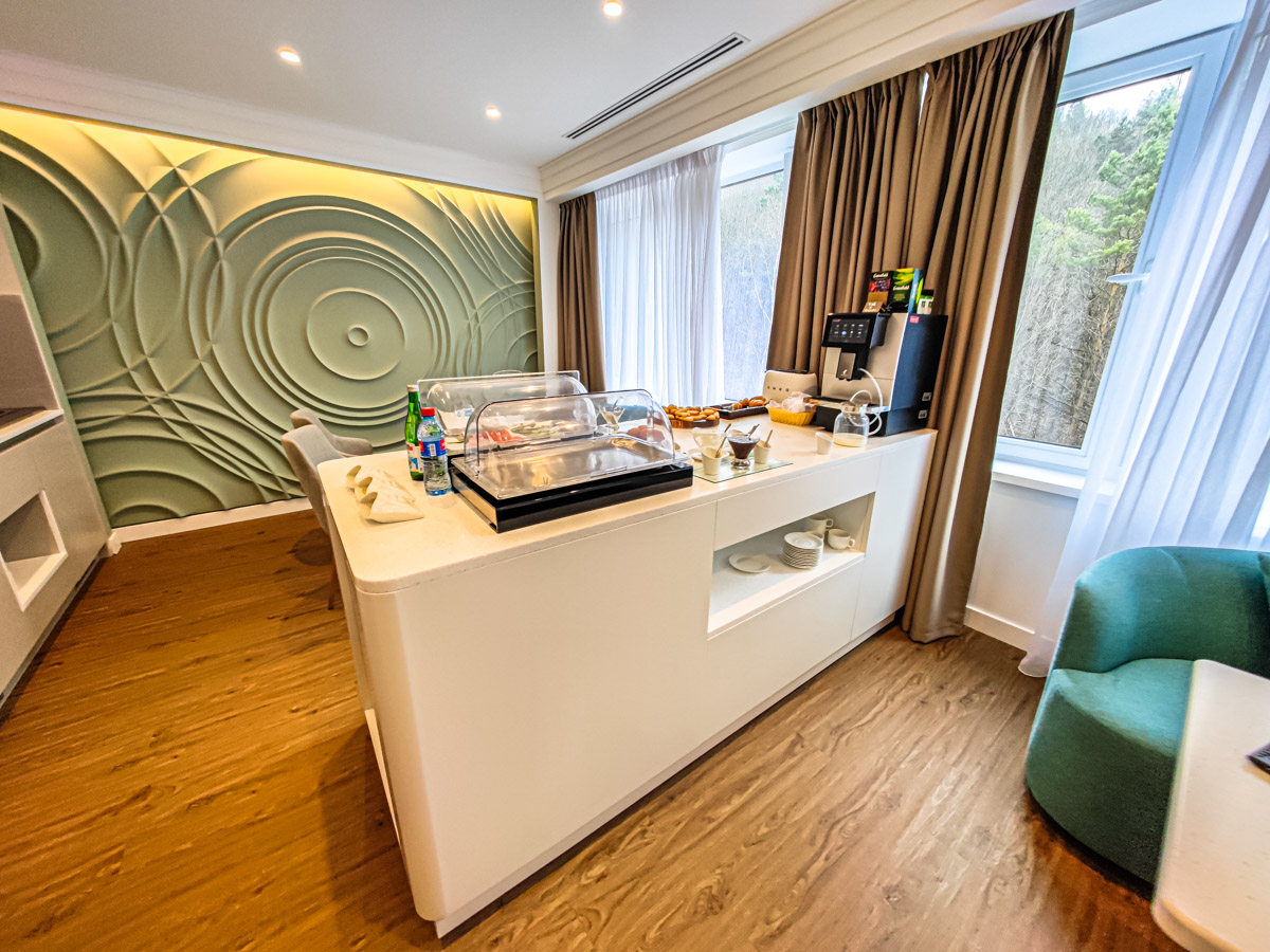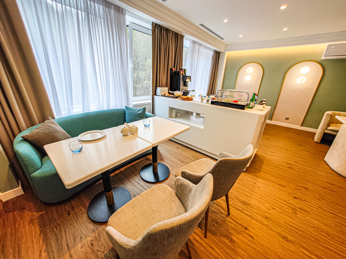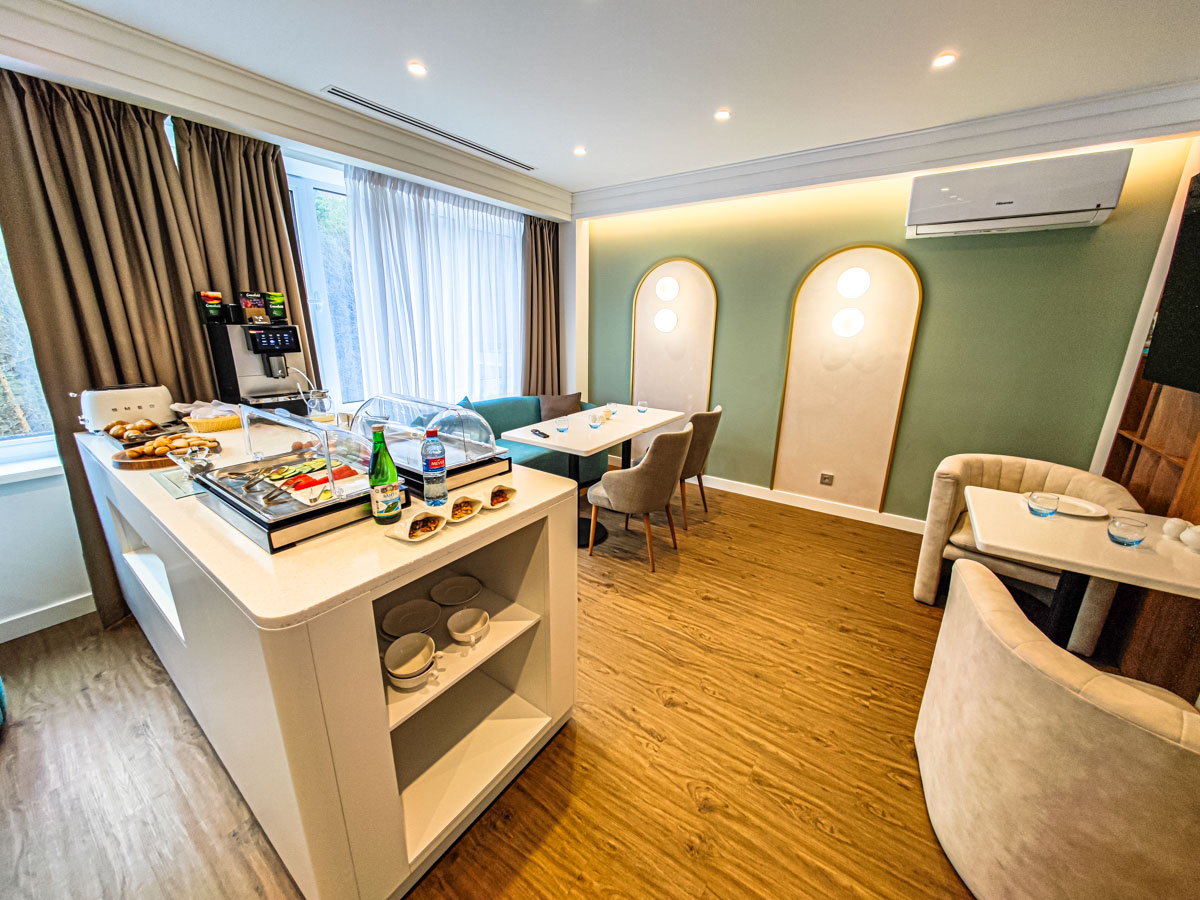 Для приятного досуга гостей предусмотрена Клубная гостиная, где находятся снек-бар и фито-бар с полезными безалкогольными напитками, работающие с 7.00 до 23.00. В гостиной организуется трехразовое питание, и у каждого гостя есть возможность выбрать персонализированное меню или заказать еду в номер в формате room-service.