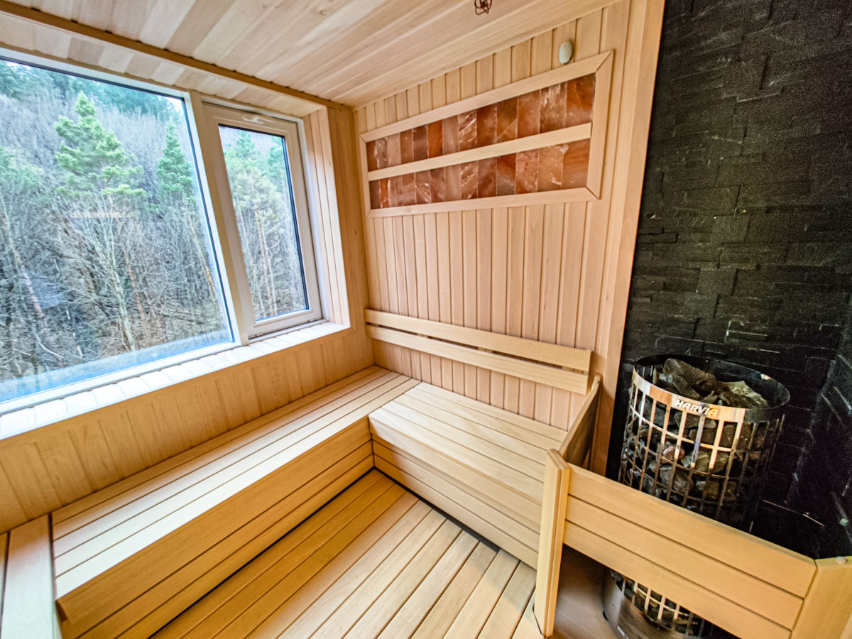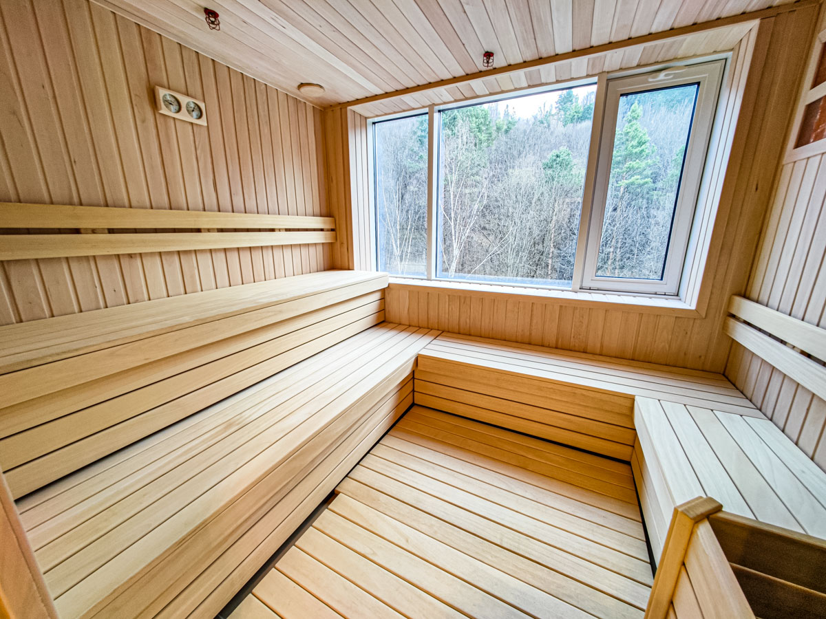 Уникальная релакс-зона представлена сауной, свободной для посещения в вечерние часы. В парной имеются большие окна с панорамным видом на лес и Национальный парк «Кисловодский». Для удобства посетителей предусмотрена раздевалка.